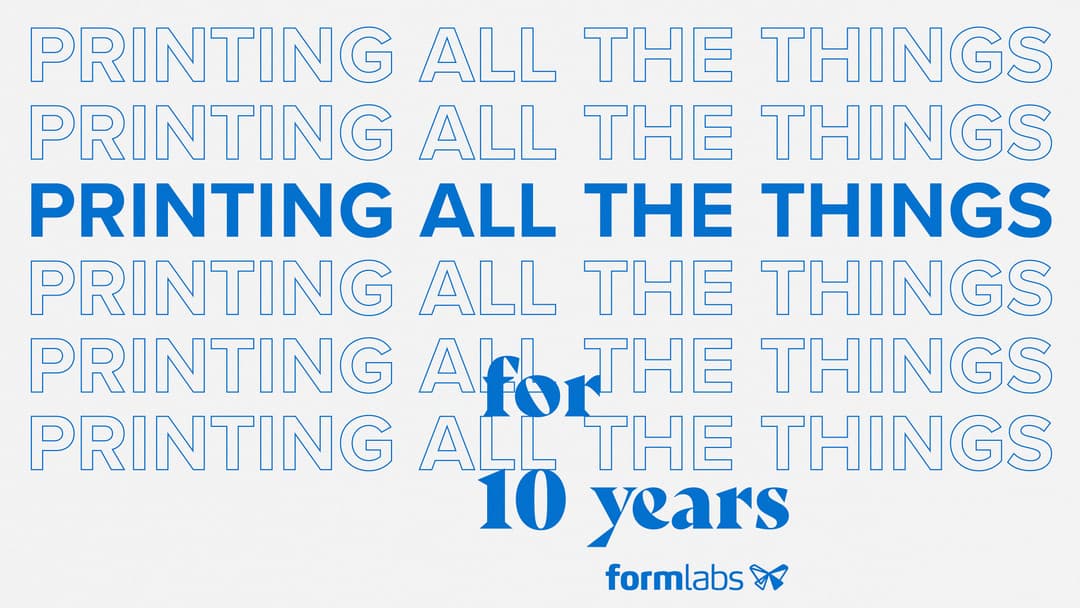 Though typically Formlabs looks forward towards the future, the 10 year anniversary prompted moments of reflection. Milestones like launching the first affordable, industrial grade SLS printer, inventing the first 3D printable nasopharyngeal swab with collaborators at USF and Northwell, and hitting the 100,000 printers sold benchmark are all achievements that reflect the hard work and passion that Formlabs employees put into our products. As the world’s demand for high quality 3D printed parts has grown, Formlabs has grown with it, developing hardware, software, and materials so that anyone can make anything.