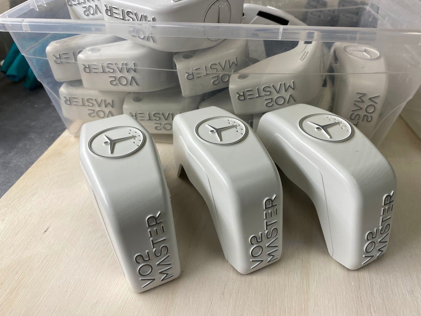 To create and ship the VO2 Master Analyzer, O’Brien deployed 3D printing for end-use production. Originally, the team was making the outside shell of the mask in White Resin. Now, the shells are printed in Tough 1500 and painted white before being fastened to the mask, to improve surface finish, emboss coloration, and durability. Formlabs’ material library was a selling point for O’Brien, saying “other companies don’t have the material library to compete. Overall, we just feel like Formlabs has the best product on the market.”