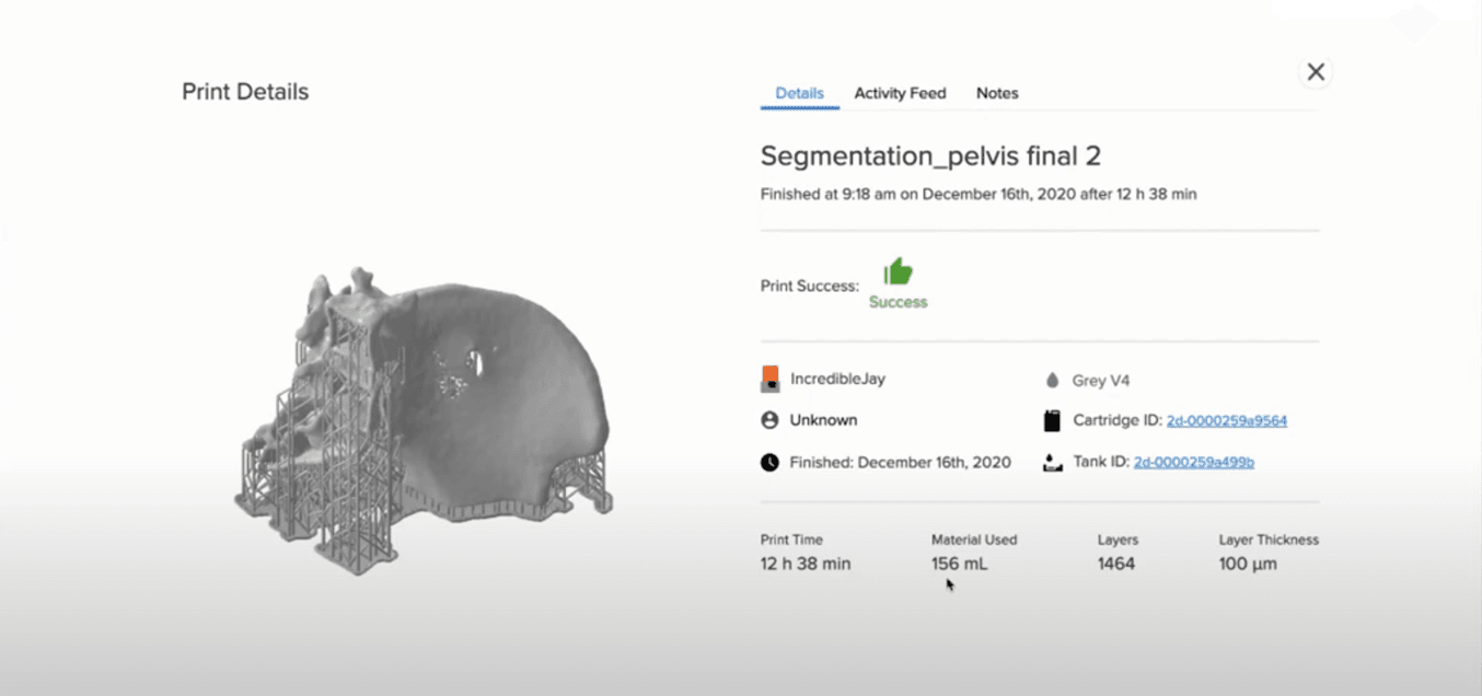 The patient's spine model was printed in just under 13 hours using only $23 of resin.