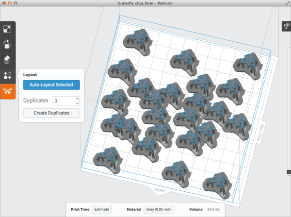 PreForm 1.4 implements automatic model packing: a quick, easy way to fit as many models as efficiently as possible onto your build platform.