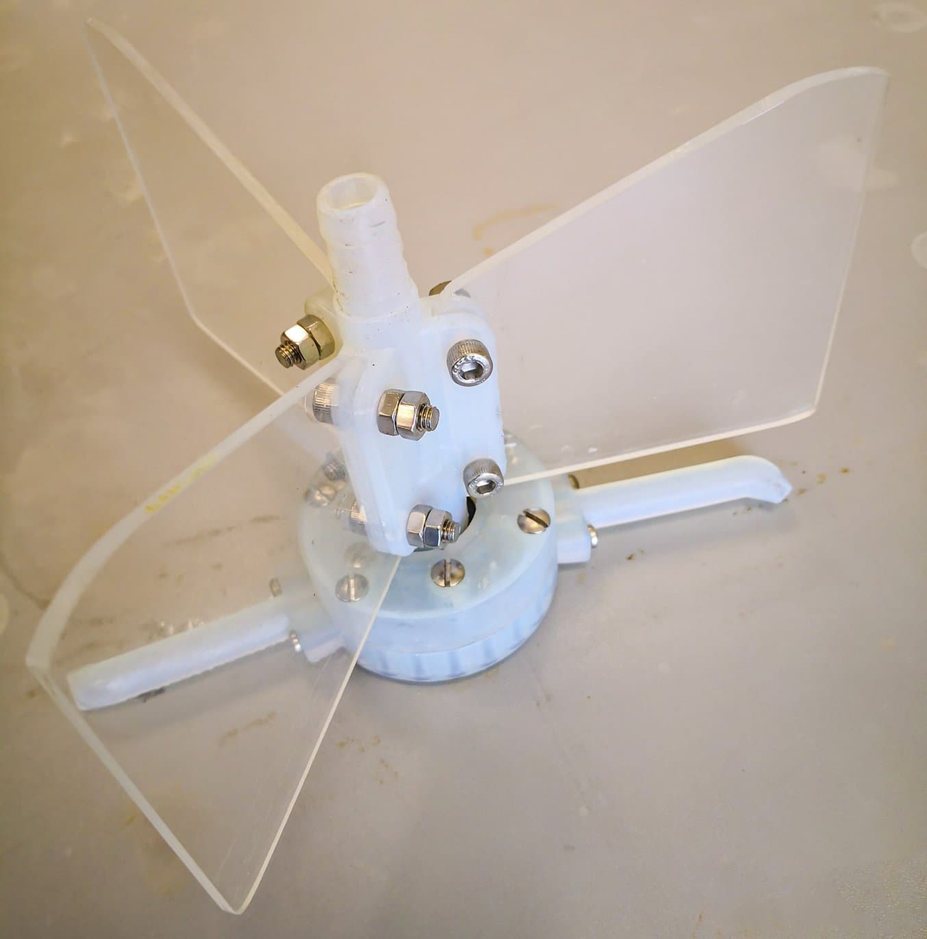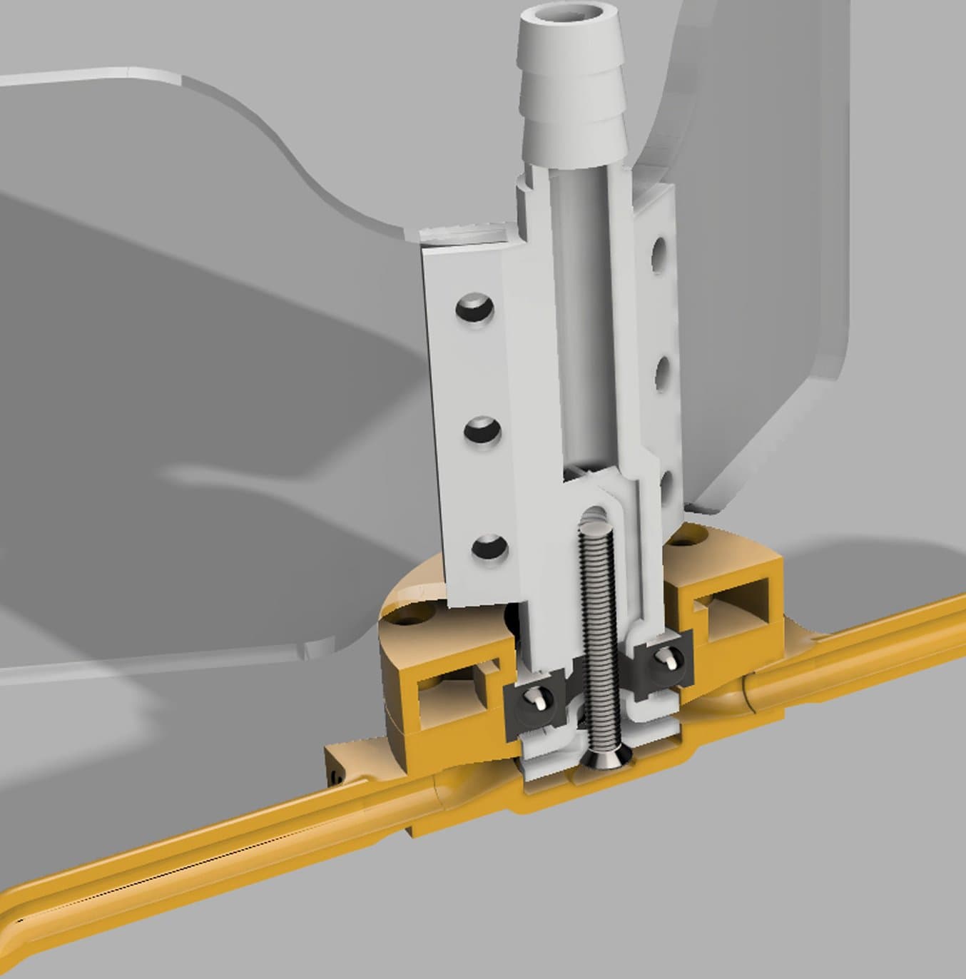 “We just connect a water hose to the water outlet, and the fins keep it in the center of the pipe. When the water starts to flow, the end rotates and flushes the inside of the pipe with clean water. The tricky part was how to get the ball bearing to work and get water through the center at the same time. It was a bit of thinking, but when you can do everything with 3D printing, you can really do everything. It works perfectly,” said Mr. Røssvoll.
