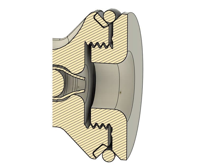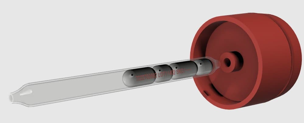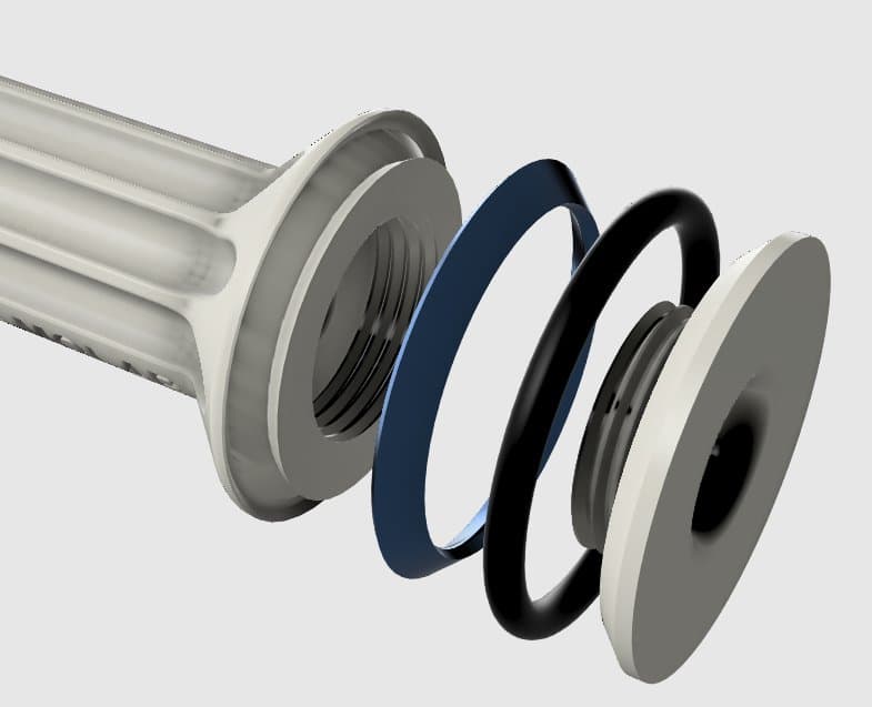 An oblique ring snaps into the ampoule holder, stopping the O-ring and bottom part from rotating when inserted into the filter’s bottom. This makes it easy to attach the filter box on the end. When twisted, the O-ring expands due to the slanted sides, pressing against the inner wall of the filter box to make a firm connection. When sampling is complete, the analysts just need to twist it the other way to release the filter box from the ampoule holder.