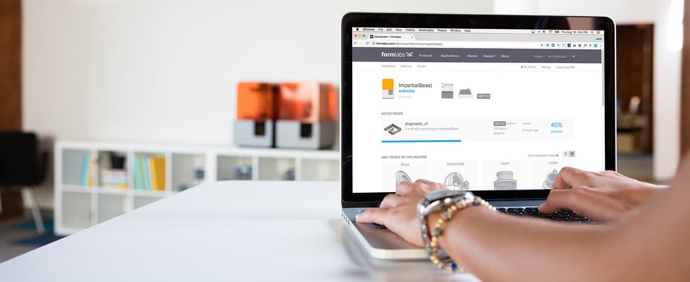 Dashboard—the online tool for monitoring Formlabs 3D printers—is designed to help users focus on their work, not managing printers.
