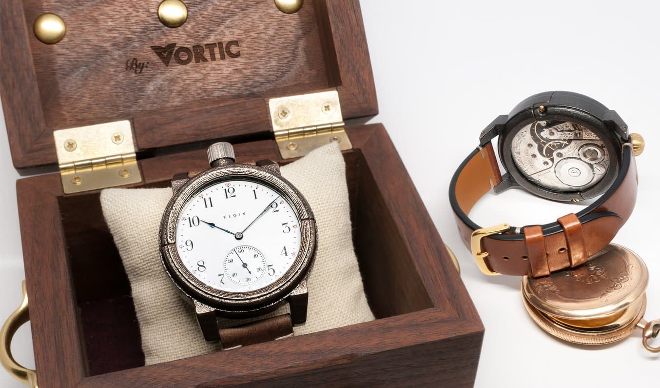 Vortic Watches is a small company in Fort Collins, Colorado that is crafting watches using a combination of vintage and cutting-edge technologies. They make each piece by sourcing original railroad-era pocket watch dials, movements, and hands, and then use the Form 1+ SLA 3D printer to customize inserts and prototype watch cases. The final touch is a beautiful leather band to tie it all together. The blending of both modern and traditional craft transforms each watch into a unique object that is part-vintage, part 3D printed.