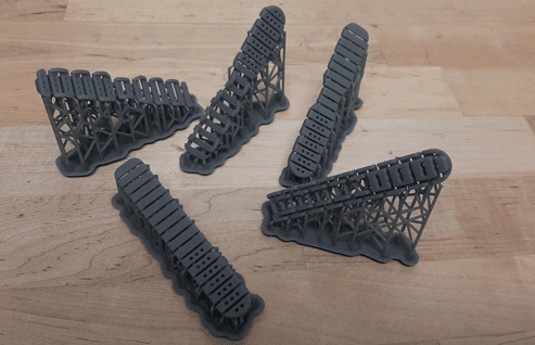 The team used a Formlabs stereolithography (SLA) resin 3D printer to make prototypes for the toothbrush. Also, to emulate the process by which the toothbrushes would be produced, the team used the same SLA 3D printer to make injection molds for developing prototypes. They knew the final product would be made of polypropylene, so the injection molds allowed the team to cast Exo-Frame toothbrushes in polypropylene for testing. By printing several different versions, the team could determine which designs were more functional than others.
