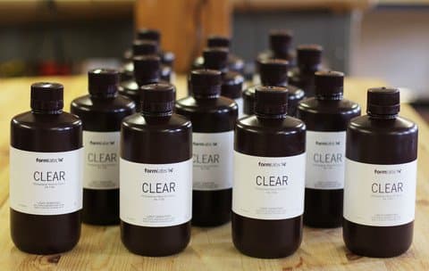 Today we're excited to offer Clear Resin for sale at the Form Store for $149 per liter. To make it easy for you to stock up, you can purchase more than one bottle at a time, and we'll consolidate up to four in a box. We will also consolidate up to three additional bottles of Clear Resin for those of you who wish to purchase more on top of the liter already included with the Form 1. We will prioritize resin shipments to customers who have already received their printer, or soon will.