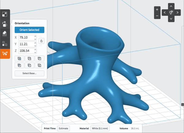 To make removing a freshly-printed model from the build platform easier, PreForm’s support generation algorithm now includes handy quick release tabs — small notches on the side of your model’s base that help it lift easily off the build platform. Wedging a narrow tool into the notch will give you some leverage to pop the model right off.