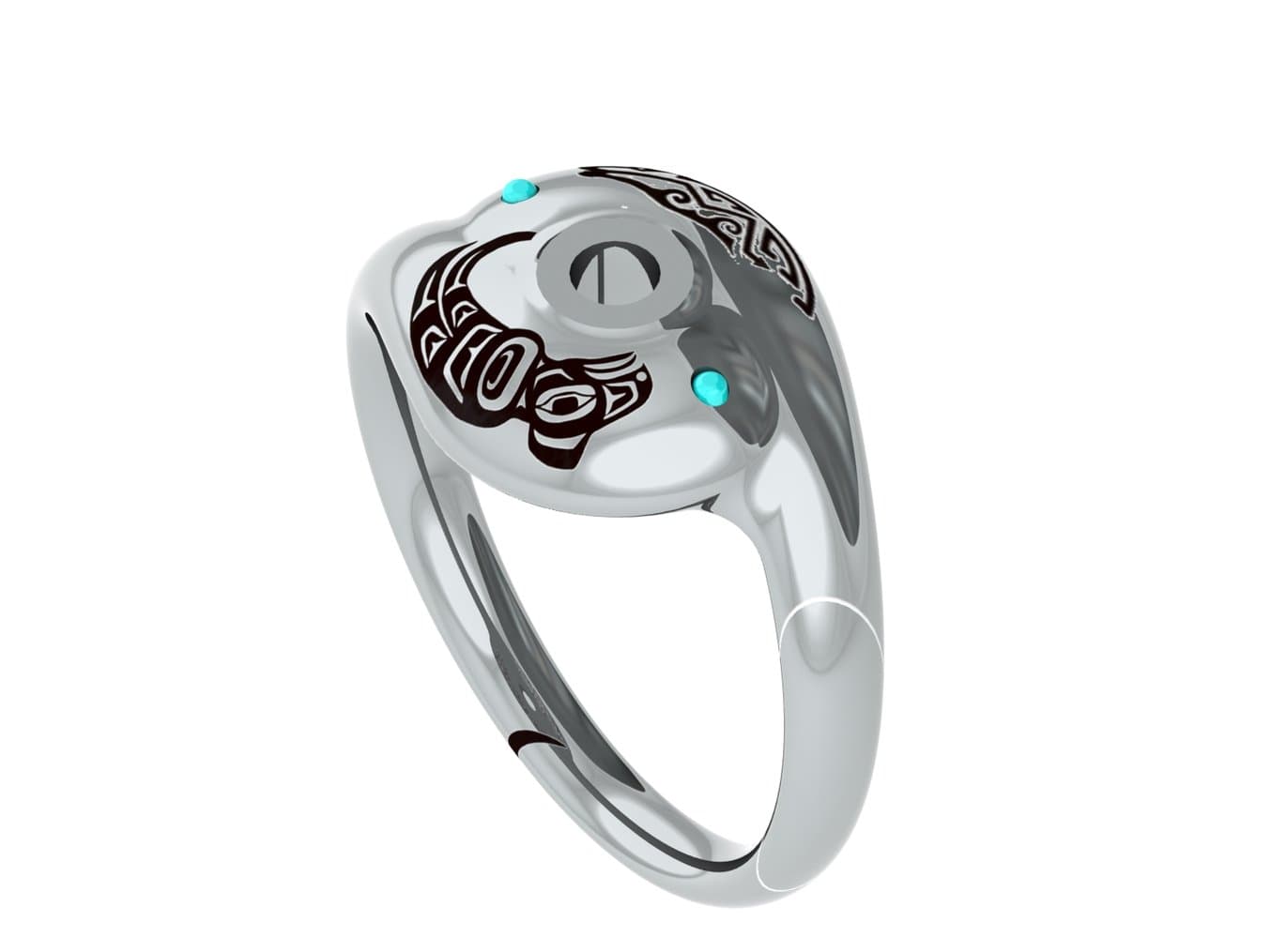 Formlabs Sales and Operations Lead, Luke Winston, designed and 3D printed a unique engagement ring for his fiancée Raven. Centered around a diamond representing the sun, the ring combines the Tlingit Raven and the Zuni Wolf to incorporate both Luke and Raven’s heritage.