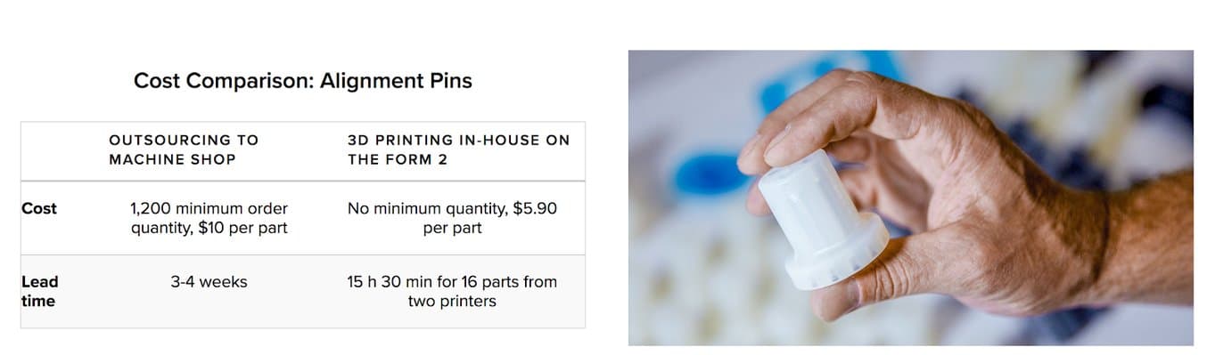 A traditional workflow of outsourcing jig and fixture production with machining requires DFM, often carries minimum order quantities to be cost effective, and can take days or weeks of lead time.