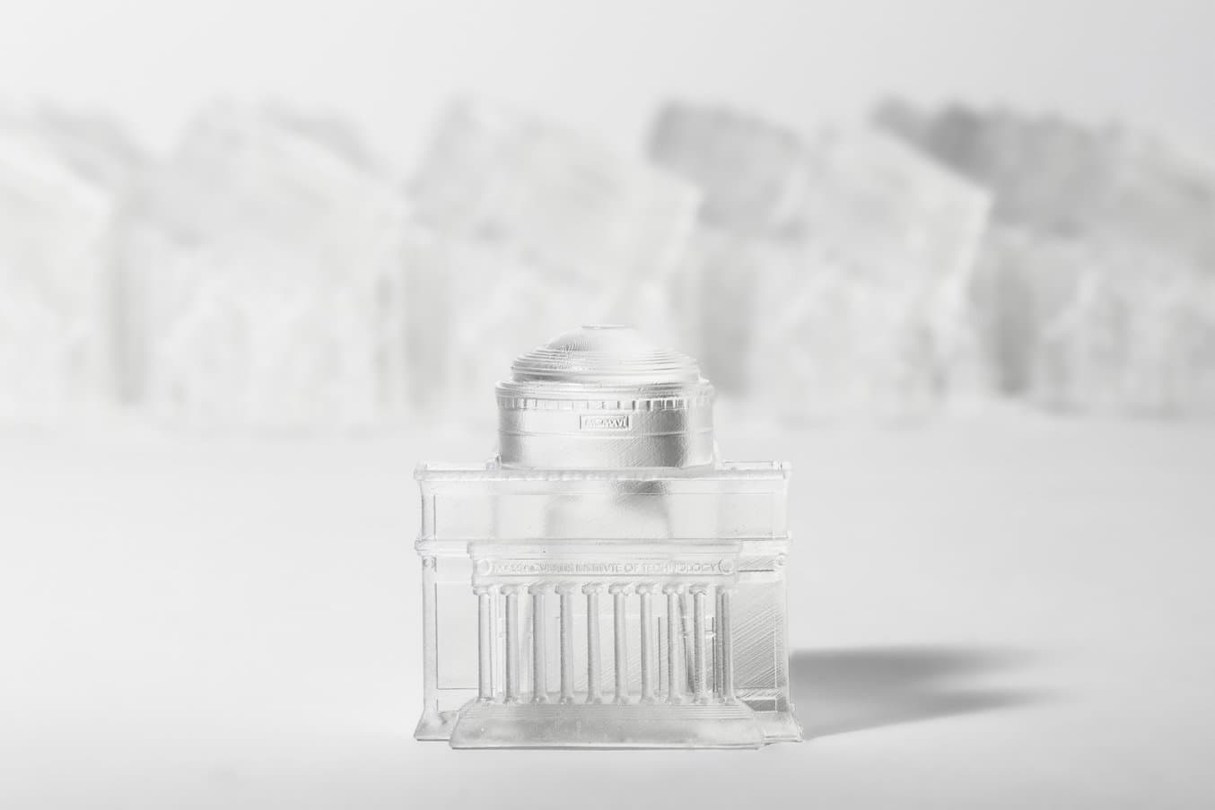 Since we couldn't get our hands on a high-resolution 3D model of the iconic MIT Dome, we turned to Formlabs modeling fiend, Brian Allan, to create one. Using online images for guidance, Brian built a model in Solidworks and printed a few variations to review with the MIT team. Then, we picked a final design and finished up the model, even adding tiny protruding text to take advantage of the high-resolution possible with the Form 1+.