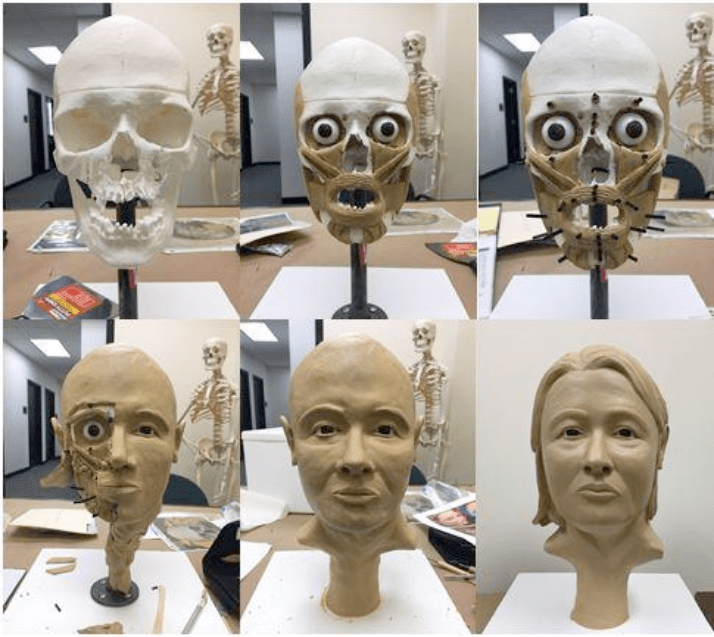 The process of reconstructing Tiffany Chambers’s face based on a 3D printed model of the victim’s skull.