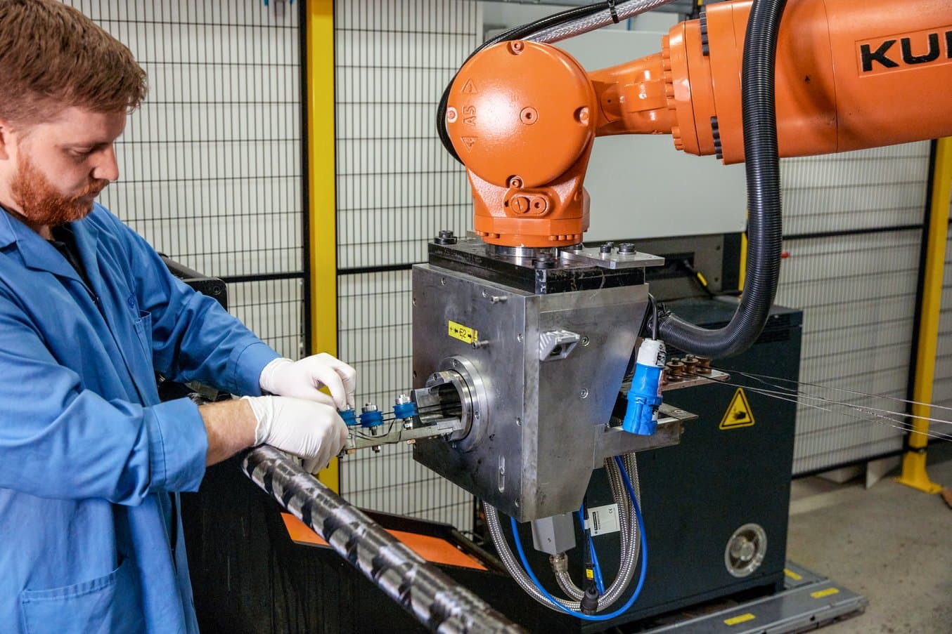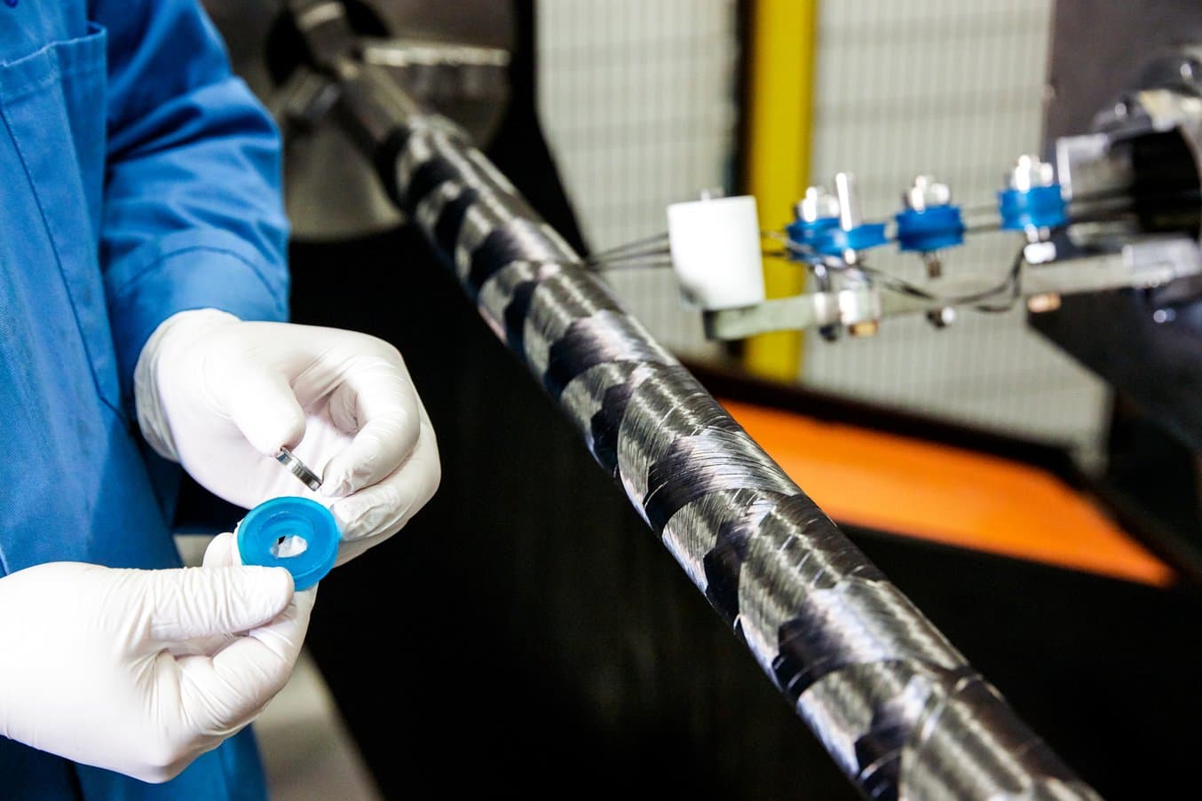 Eines der Forschungsprojekte in dem Zentrum untersucht die Faserwicklung, die für gewöhnlich zur Fertigung von Kraftstoffrohren, Schläuchen, Behältern und Wellen für die Luft- und Raumfahrt und die Automobilindustrie eingesetzt wird. Bei der Arbeit mit unterschiedlichen Materialien, die verschiedene Breiten aufweisen, mussten die Forscher das System anpassen, um die Fasern mit der hohen Genauigkeit verarbeiten zu können, die in der Luft- und Raumfahrt gefordert wird.