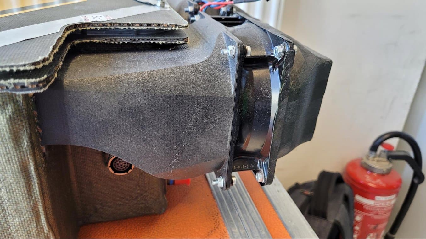 An den HV Akkumulator gebaute Airducts aus Nylon 12 zur Luftkühlung der Einheit (hinteres Teil der angebauten Komponente)