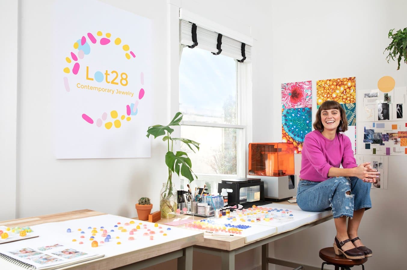 Falls Sie vergangenen November auf der New York City Jewelry Week (NYCJW) waren, haben Sie dort vielleicht Formlabs Ambassador Jocelyn DeSisto getroffen. Nachdem sie 2017 ihren BFA in Schmuckdesign vom Savannah College of Art and Design erhielt, startete Jocelyn ein modernes Designstudio in New York City mit dem Namen Lot28. Sie stellt ihre leuchtenden, von Korallen inspirierten Schmuckstücke mit einer Basis von Formlabs Clear Resin und handverarbeitetem Sterlingsilber her.