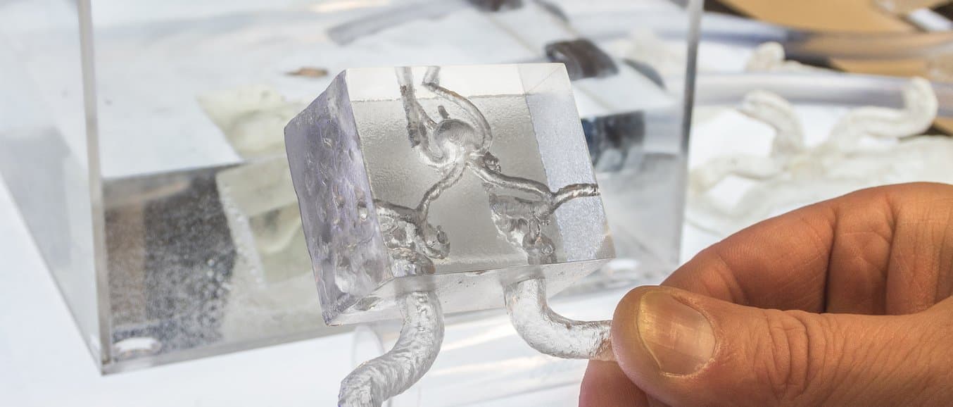 Dr. Kemmling verwendet Formlabs Clear Resin, um 3D-gedruckte Aneurysma-Modelle zu fertigen. Fordern Sie einen kostenlosen Probedruck aus Clear Resin an.