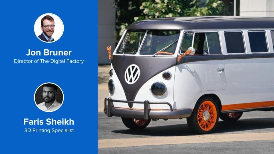 Las grandes empresas están combinando también la impresión 3D con los medios tradicionales. Hace poco, Volkswagen recreó su emblemático Microbús de 1962, sustituyendo su motor de gasolina por un propulsor eléctrico de 120 caballos y 173 pies por libra. El concepto "Type 20"también contiene una serie de mejoras que son posibles gracias a piezas impresas en 3D , como llantas de aluminio diseñadas de forma generativa. Incluso los tapacubos están impresos en 3D. Aunque parecen hechos de acero estampado, la verdad es que se fabricaron en una impresora 3D SLA de Formlabs y después se galvanizaron para tener el aspecto y tacto del metal.