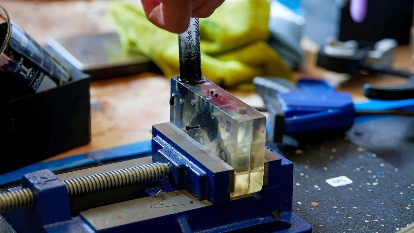 El equipo empezó por utilizar impresoras 3D de modelado por deposición fundida (FDM) para crear sus moldes. Las impresoras FDM ofrecen impresiones rápidas y baratas, pero que a menudo tienen dificultades para soportar situaciones con grandes presiones. Los moldes tienen que ser extremadamente lisos e imprimirse a alta resolución, por lo que la SLA es una opción mejor. Austin nos dijo: "El proceso de moldeo de nuestros dedos es algo que originalmente habíamos estado usando durante mucho tiempo con moldes impresos mediante FDM. Sin embargo, esos tenían varios inconvenientes para la inyección, principalmente que el acabado de la superficie no era bueno. Salían las estrías típicas de los impresos mediante FDM, ya que se realizan capa a capa. Y todos nuestros objetos moldeados acabarían teniendo unas extrañas texturas estriadas encima. Cuando pasamos a usar la Clear Resin, pudimos obtener un acabado de la superficie mucho más liso por la mayor resolución que ofrece. Por eso, producimos estos moldes tomando el inverso de la forma del dedo que quisiéramos, sustrayéndola de un bloque y añadiendo canales y entradas para la inyección de silicona en dos piezas. Una vez que el molde estaba diseñado e impreso en una impresora 3D, colocábamos un hueso impreso en 3D en su interior, que forma el esqueleto del dedo".