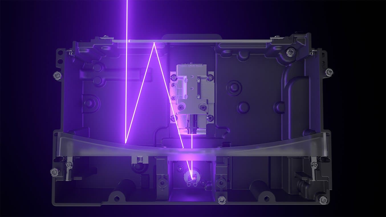 The Light Processing Unit (LPU) inside the Form 3+ contains a system of lenses and mirrors that ensures an accurate, consistent laser spot.
