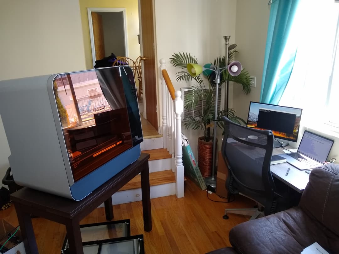 Some of our most commonly asked questions about 3D printing from home relate to environmental considerations, like sounds and smells. To prevent any sensitivity to smells, we’ve found it helpful to keep the post-processing station in a well ventilated area or near an open window for easy access to airflow. While the Form 3 is relatively quiet, comparable to the sound of a microwave, you may want to consider placing it away from quiet areas of your house to prevent any type of disruption.