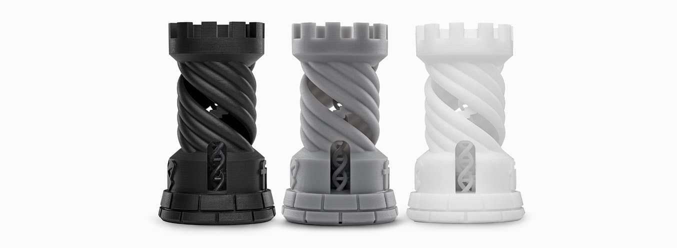 Our in-house materials team is constantly at work adding to and improving our resin library. In January, we released our first matte material: Grey Resin v3, which has since become our most popular resin. Now, we’ve rolled out this smooth matte finish to two more of our Standard Resins: Black and White.
