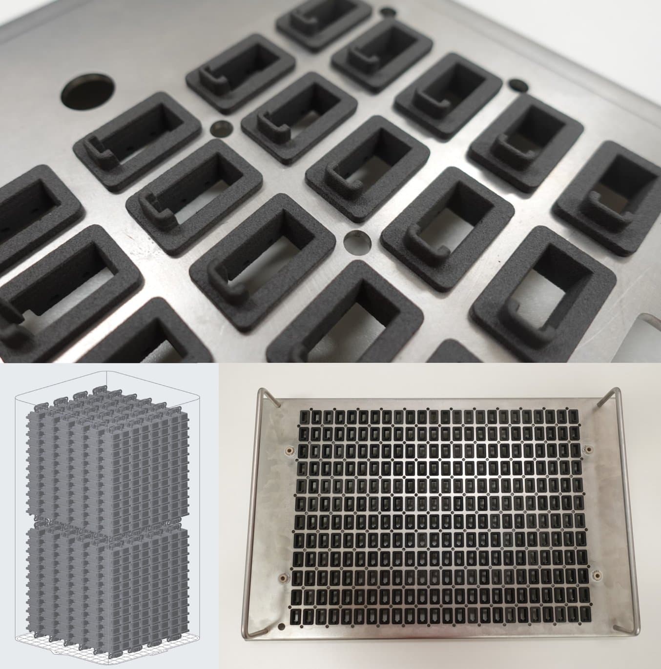 In one cleaning process, a Rosenberger employee noticed that a washing system was only cleaning small batches, despite having the necessary volume capacity for larger batches. He designed a carrier system in which larger batches, placed on a stainless steel plate, could be immersed in the ultrasonic bath. Kapsreiter’s team designed and printed 8500 clips in Nylon 12 Powder to attach the plate. "Our Fuse 1+ 30W ran for five weeks," Kapsreiter recalls. With the help of high-throughput SLS printing, they were able to increase the efficiency of the entire process.