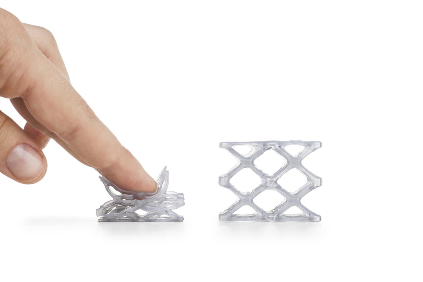 Its elastomeric properties allow you to print models that are pliable when thin and resilient when thick. Flexible’s compression characteristics also make it great for custom grips, stamps, gaskets, and wearable prototypes. Read more about appropriate applications here, and take a look at the full technical specifications.