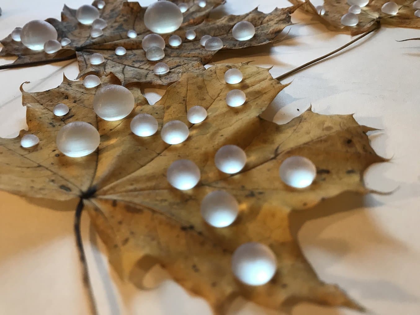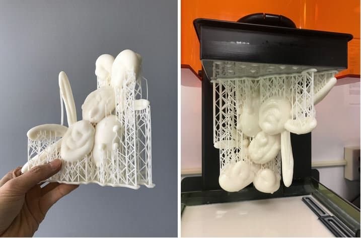 Another project, called Morning Dew, mixes real leaves with 3D printing dew drops. The laser on an SLA 3D printer is capable of creating highly accurate tiny objects, in this case water droplets, with repeated precision.
