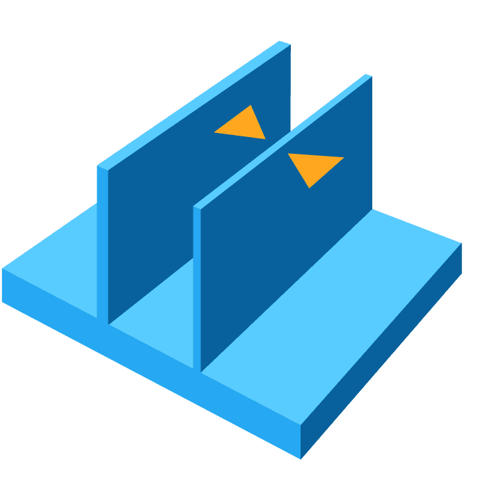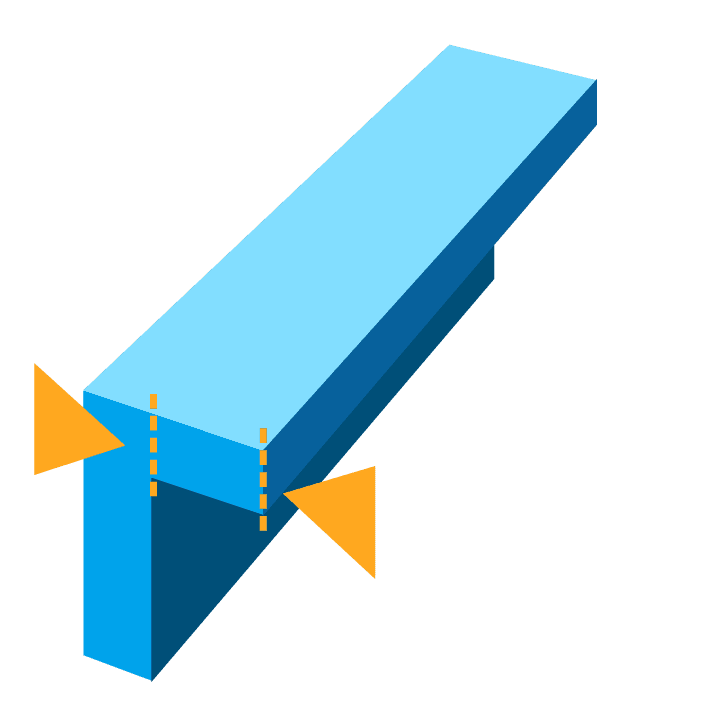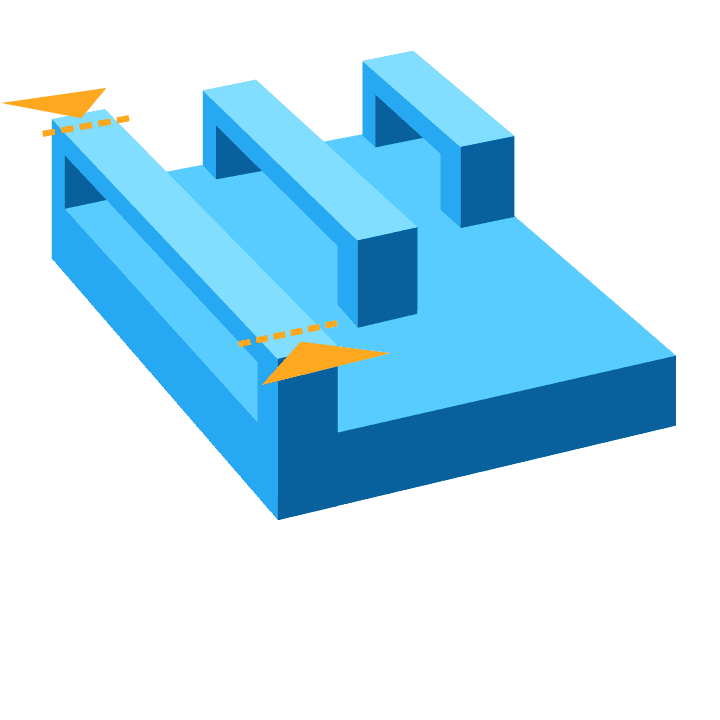 Une portée est caractérisée par une distance entre deux supports intermédiaires. Imprimer des portées horizontales n'est pas conseillé, même si certaines géométries peuvent être produites avec succès. Pour une pièce de 5 mm de largeur et 3 mm d'épaisseur, des portés de plus de 21 mm sont susceptibles d'échouer. les pièces plus larges doivent être réduites afin d'éviter la rupture pendant le processus de décollement.