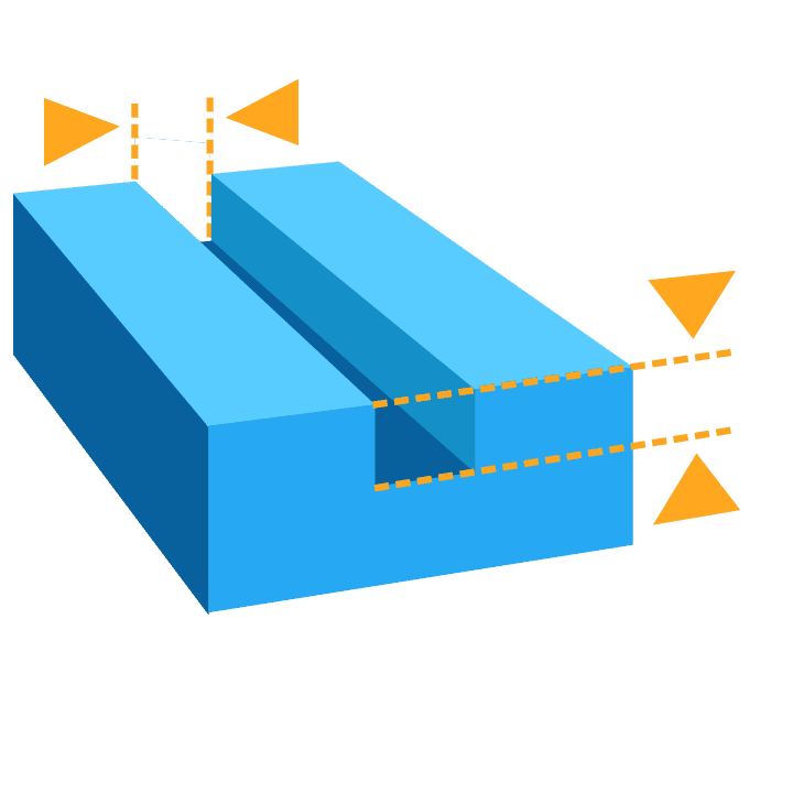 Les parties engravées sont imprimées en profondeur sur votre modèle. Les détails d'une profondeur et largeur inférieure à 0,4 mm ne pourraient pas être visibles. En effet, il y a un risque que ces parties polymérisent avec le reste du modèle lors de l'impression.