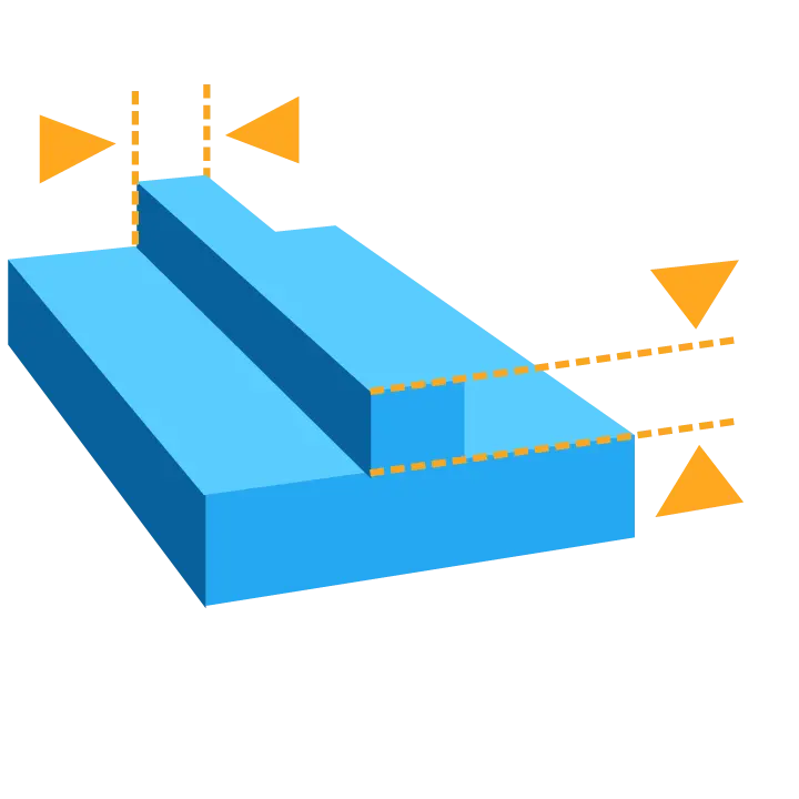 Dimensions recommandées : de 0.3 mm (7 mm de hauteur) jusqu'à 1.5 mm (30 mm de hauteur)
