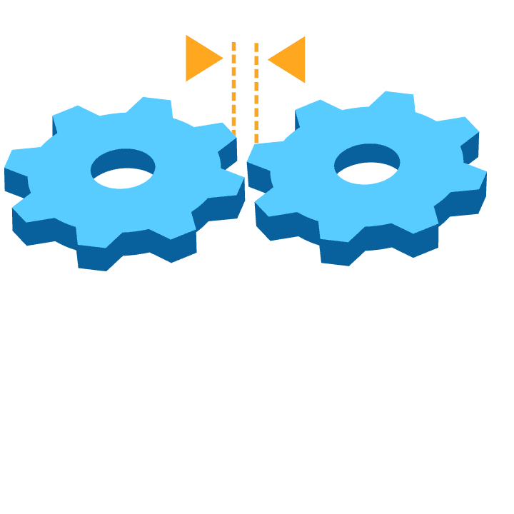 L'espacement minimum est la distance nécessaire entre deux pièces d'un modèle en mouvement (par exemple, la distance entre des engrenages ou des articulations). Un espacement de moins de 0,5 mm peut provoquer la fusion des pièces.