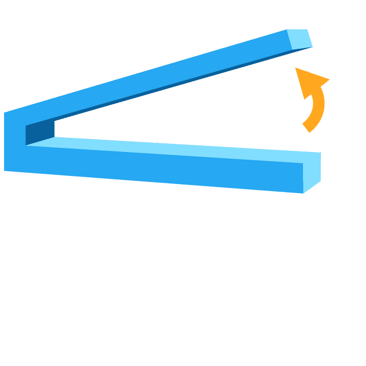Une pièce en surplomb ou en porte-à-faux se réfère à une partie du modèle qui dépasse de manière parallèle à la plateforme de construction. Imprimer de tels détails sans supports est à éviter car les couches ne peuvent pas maintenir leur structure. Les Porte-à-faux horizontaux seront légèrement déformés d'au moins 1 mm, cette déformation peut augmenter considérablement avec l'augmentation de la longueur du surplomb. Vous pouvez activer la fonction “internal supports” dans PreForm pour vous assurer que les porte-à-faux sont supportées.