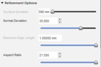 Cette option permet de choisir entre trois des niveaux prédéfinis pour la finesse du maillage : faible, moyen et élevé. Cela déterminera le nombre total de triangles utilisés pour le modèle. Il existe une autre option personnalisée qui permet à l'utilisateur de faire un maillage plus fin, à partir des paramètres suivants :