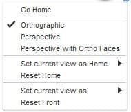 Ce cube vous permet de manipuler le modèle d'une façon plus structurée. En cliquant sur les coins, les bords ou les faces du cube, le modèle se réorientera par rapport au quadrillage du fond d'écran. Cela facilite le passage entre différentes vues standards du modèle. En cliquant sur la flèche située en bas à droite du cube, une liste déroulante s'affiche. Elle propose plus d'options pour contrôler la visualisation.