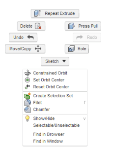 C'est un menu contextuel de situation, comportant les fonctionnalités couramment utilisées, qui s'affiche en cliquant droit sur le modèle ou le quadrillage du fond d'écran. Les fonctionnalités affichées dépendent de l'endroit où l'on a cliqué et de l'espace de travail actif. Ce menu facilite et accélère les opérations de modélisation.