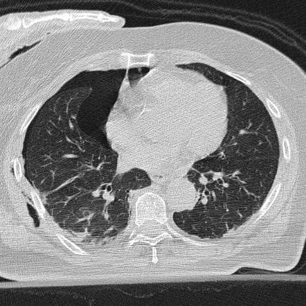 Figure 2: Traumatic Pneumothorax, Case courtesy of Dr David Cuete, Radiopaedia.org, rID: 24619, https://radiopaedia.org/cases/24619