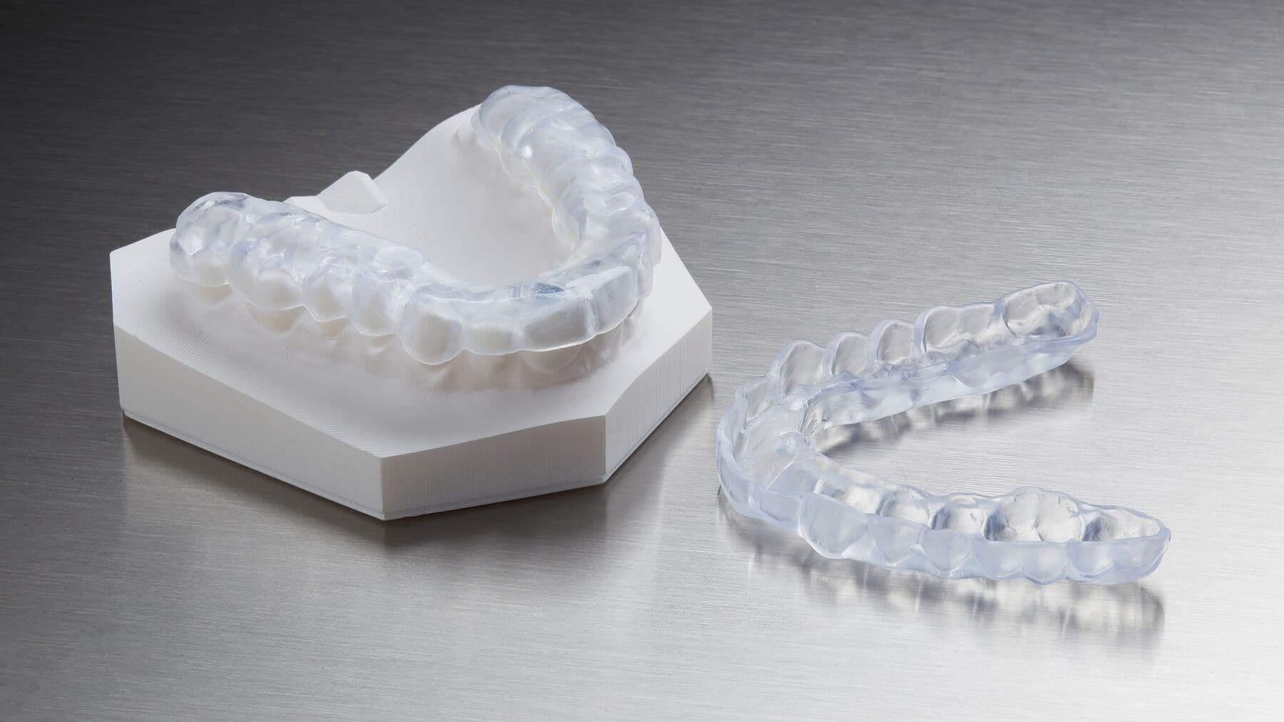 Dental LT Comfort Resin is a long-term biocompatible material for directly 3D printing flexible occlusal splints and night guards in-house, more easily than ever. Printed appliances are easily polished to high optical transparency, and offer enhanced comfort and durability that boosts patient adoption and compliance.