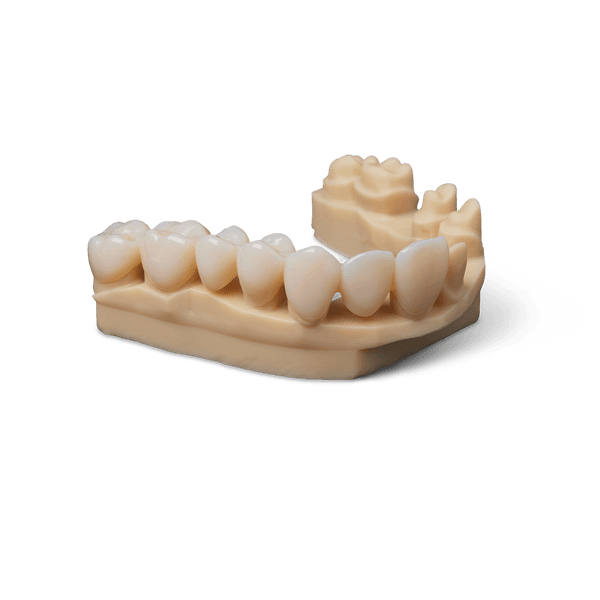 La Premium Teeth Resin è un materiale biocompatibile rinforzato con nanoceramica con un'estetica migliorata, proprietà meccaniche e longevità convalidata che garantisce prestazioni ottimali dal punto di vista clinico. Stampa in 3D denti da protesi, restauri provvisori ad arcata completa supportati da impianti (All-on-X), impianti provvisori singoli (corone, inlay, onlay e faccette) e ponti fino a sette unità, senza rinunciare ad alta stabilità meccanica, estetica realistica e un flusso di lavoro semplificato.