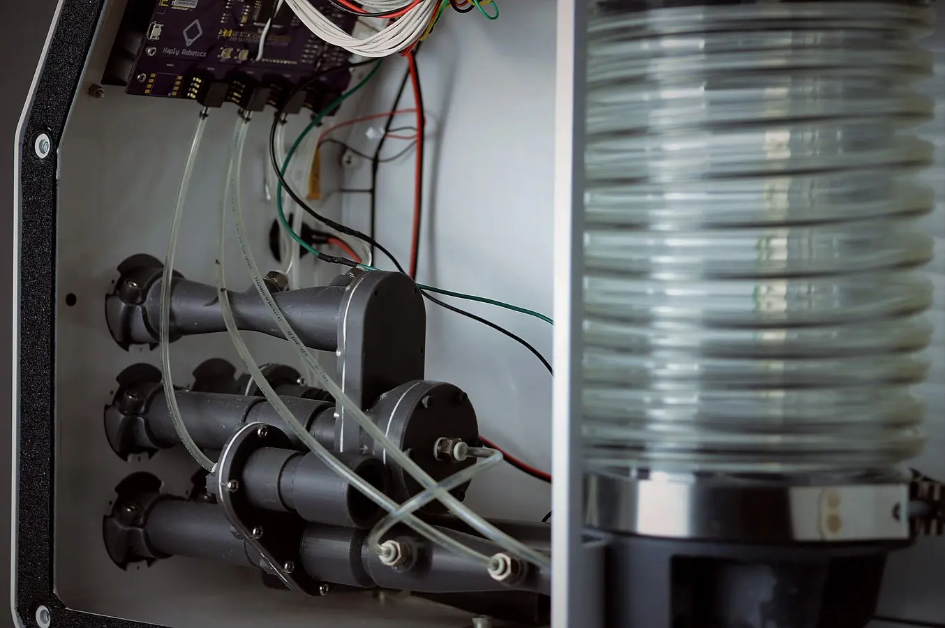 3Dプリント製のHaplyの人工呼吸器内部部品。