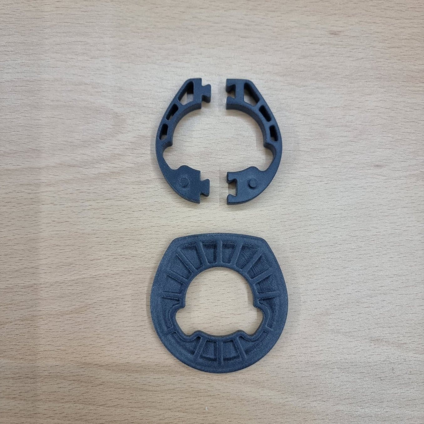 Nylon 12 파우더로 출력된 맞춤형 자전거 조립 부품. 형상 구현력이 높아 경량을 위한 복잡한 형태도 수월히 출력됩니다.