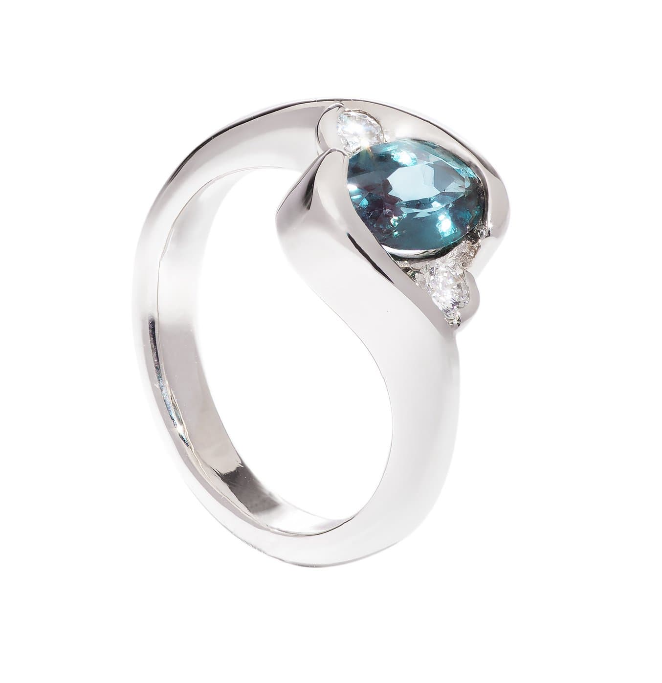 I knew I wanted to use Alexandrite, a unique stone with color-changing properties, in the final ring (because diamonds are boring ;) ), as well as to 3D print the ring with the Form 1+ desktop 3D printer and have it cast. After talking to several jewelers in Boston, I found Ed Spencer at Skylight Jewelers who knew a lot about unusual stones, and was happy to work with the stereolithography printed ring.