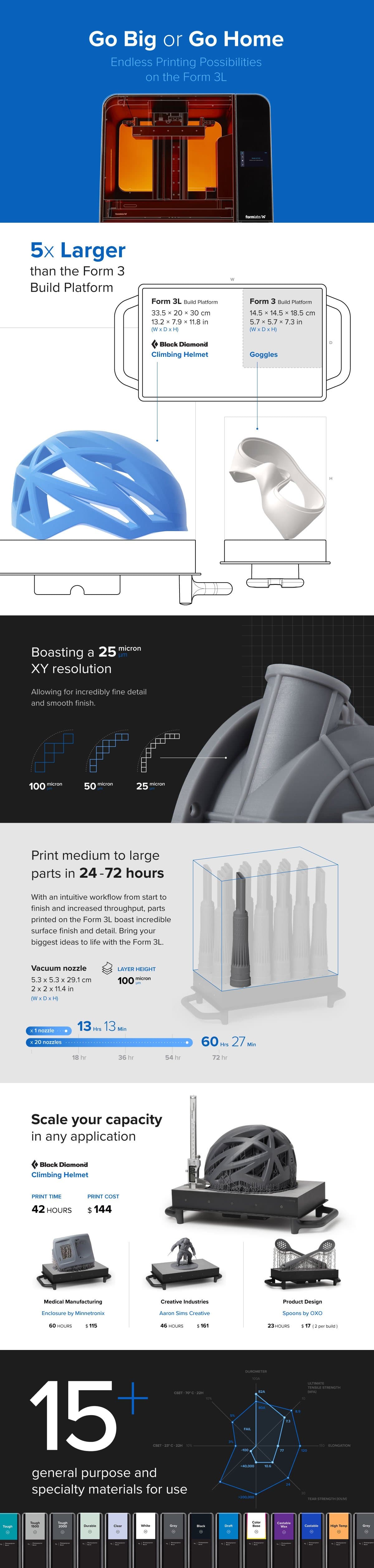 Take control of large-scale part production, increase your throughput, and bring your biggest ideas to life with the Form 3L, a cost-effective large format 3D printer that doesn’t compromise on the details. See the Form 3L in action with our comprehensive infographic.