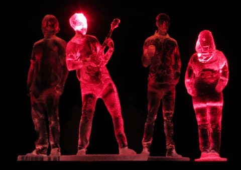 This toroidal Mobius Voronoi network (that’s an afternoon in Wikipedia right there), designed by Bathsheba Grossman for fabrication in SLS powdered metal printers, came out great in Jeannine Woyansky’s build. A coating of Krylon metallic spray paint makes it shine.