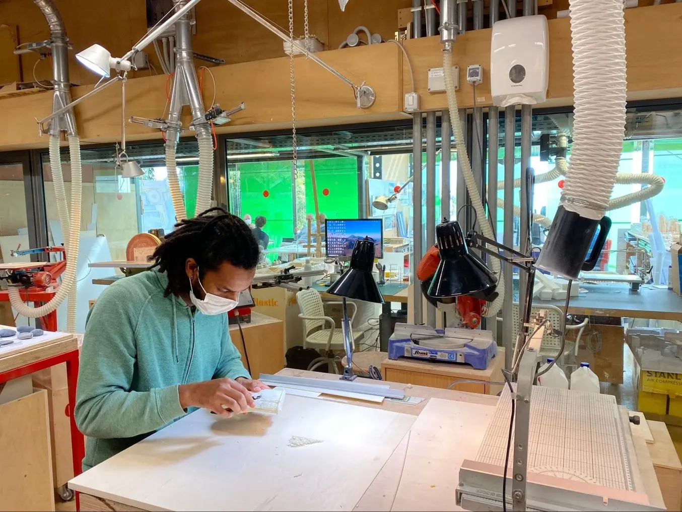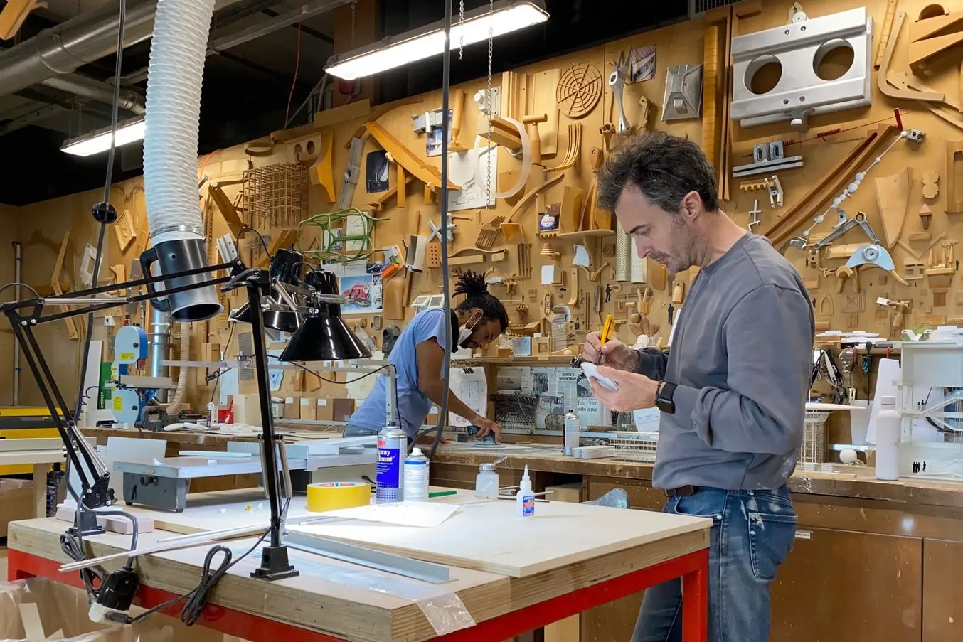 The model makers use a combination of traditional tools for hand-making models as well as digital tools like 3D printers, CNC milling machines, and laser cutters to create various parts.