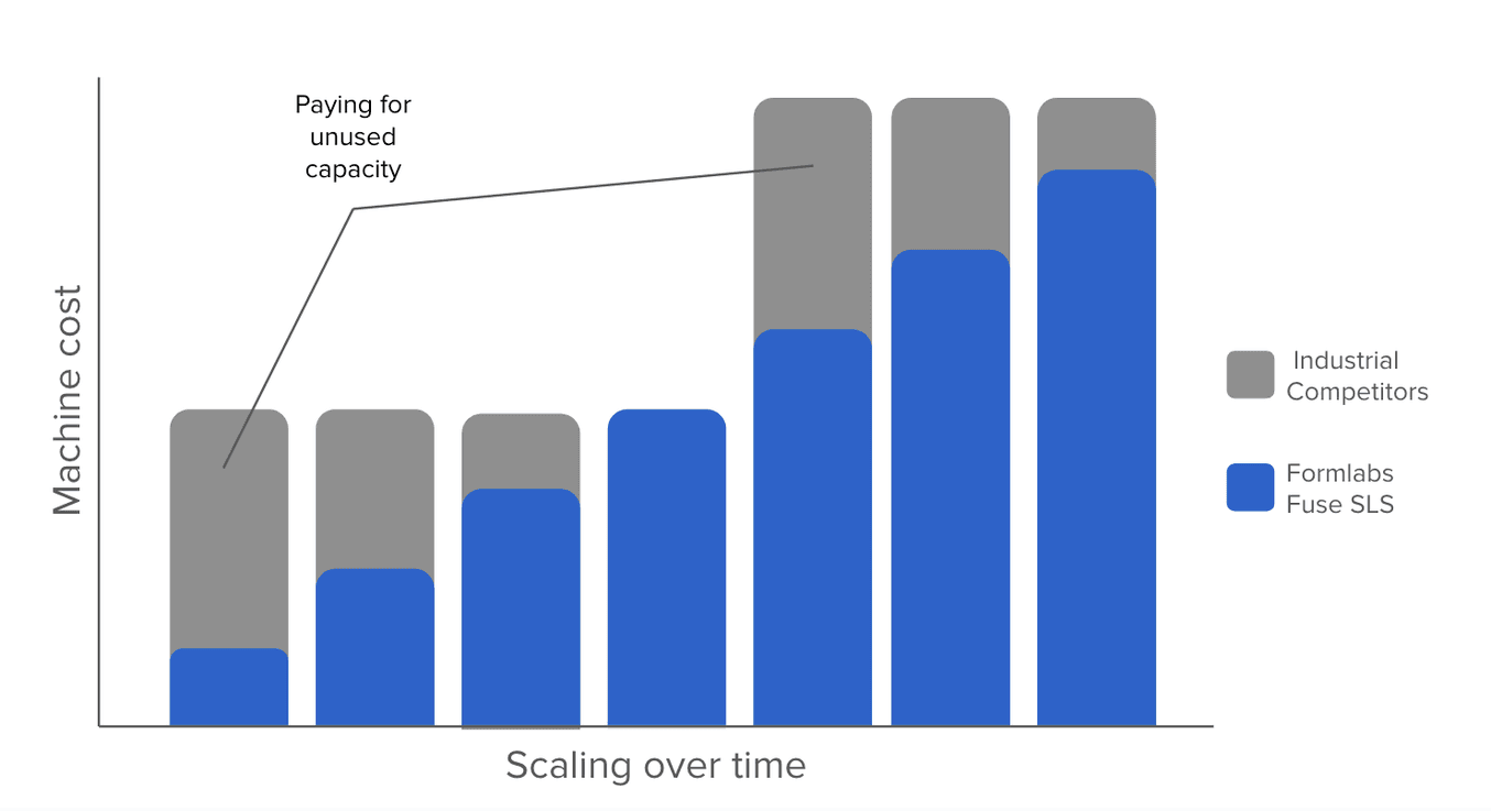 MJF systems limit your ability to match your production to customer demand, so you're quite likely to end up paying for unused capacity. The higher hardware costs also make it cost-prohibitive to try out or run more niche materials given the lower demand and higher barrier to entry.